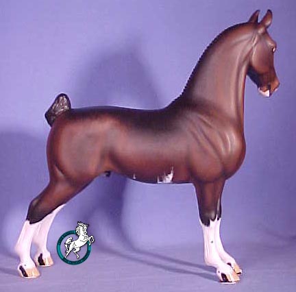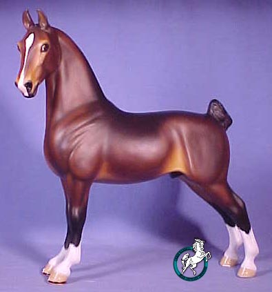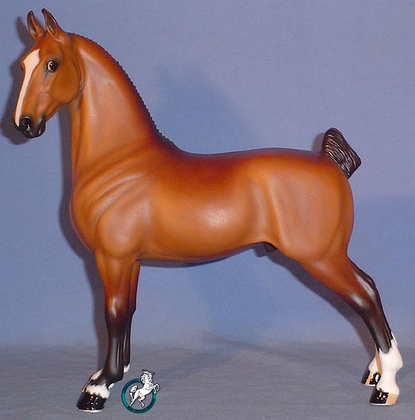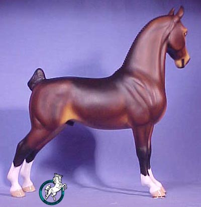 So, as a tribute to this rare and noble breed, I present to the model horse world: "NOBLE ARISTOCRAT"! Several renowned experts on Hackney Horses were consulted during the creation of this piece to assure accuracy. From his proud stance and noble expression to his detailed shoes to the tiniest details of his 36 braids he is an outstanding example of a Hackney Horse! "NOBLE ARISTOCRAT" is aproximately1/9th scale. (The piece measures: @ 10-3/8" tall, @ 10" long.)