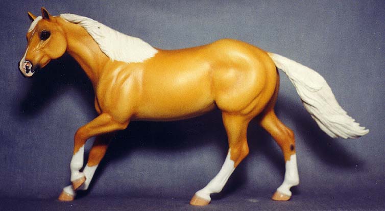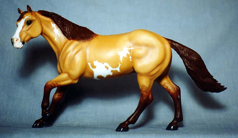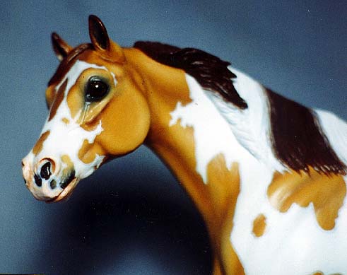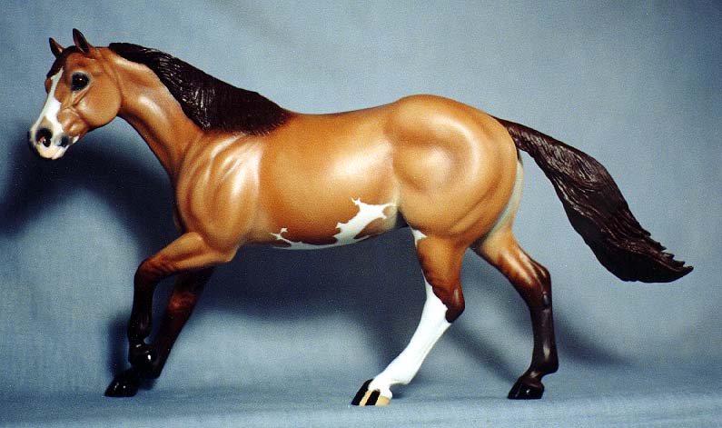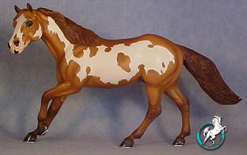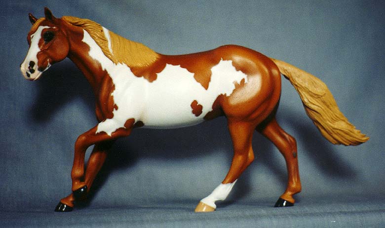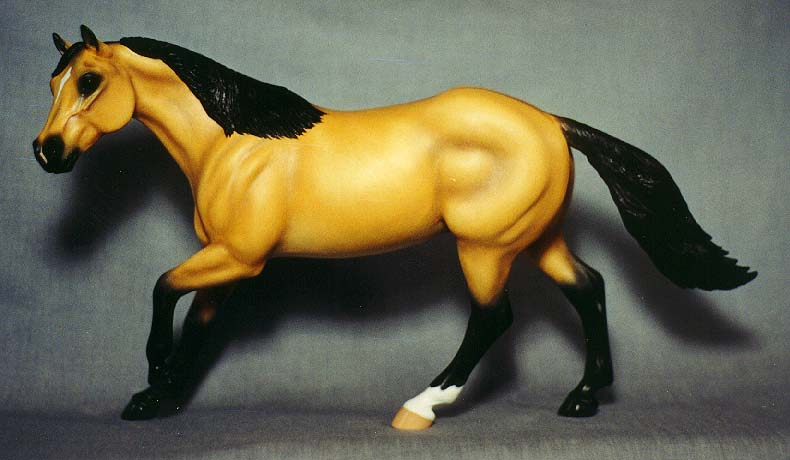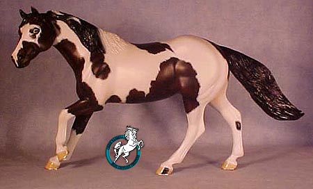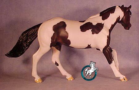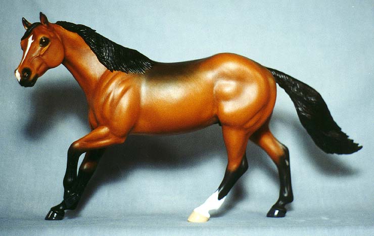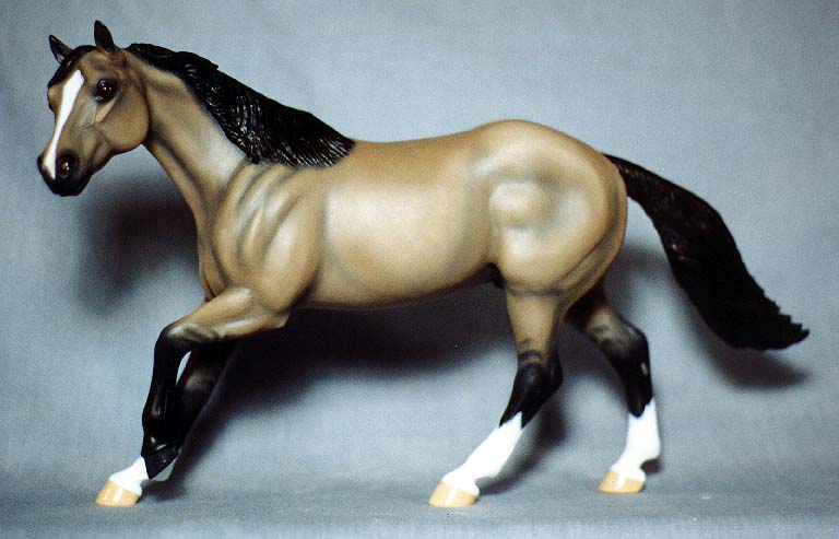 The original was live shown numerous times and won many, many championships. This versatile performance model excels in the show ring as either a western or english event horse. Because of the high demand for the piece, he was modified slightly (hair mane and tail replaced with sculpted versions) for production. This was the first sculpture released in resin by Chris Nandell. Completed in the Fall of 1995, it was first released in the Spring of 1996 and the last castings were molded in the Fall of 2000. There were less than 150 pieces in the entire run, and they were sold either painted by the artist or unpainted. This versatile performance model excels in the show ring as either a western or english event horse.