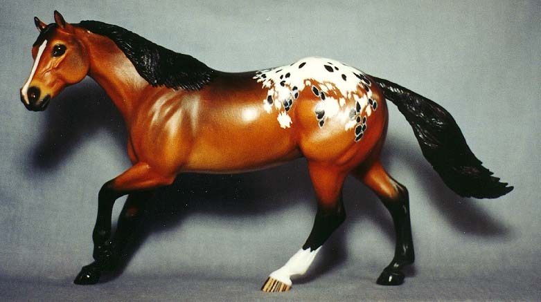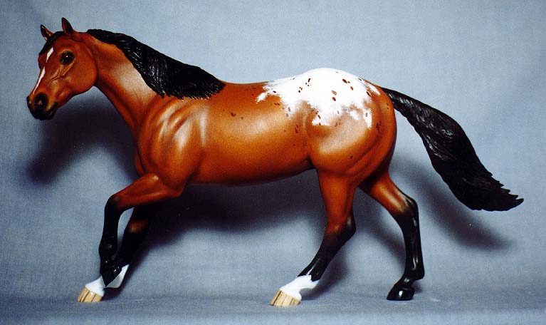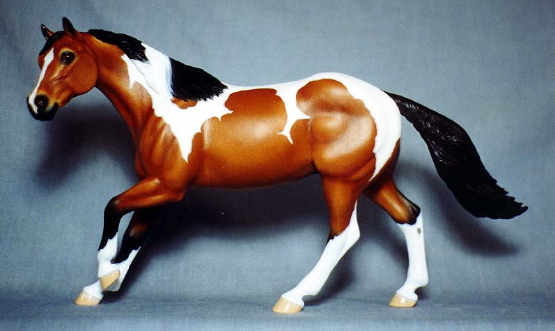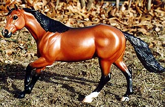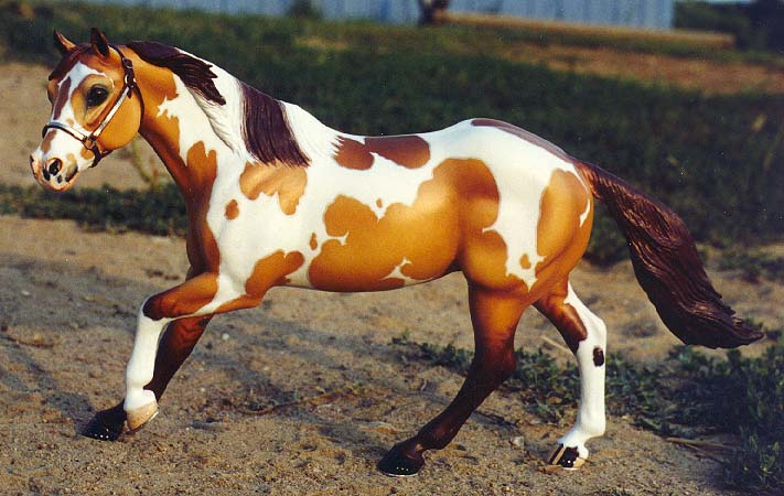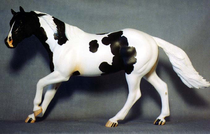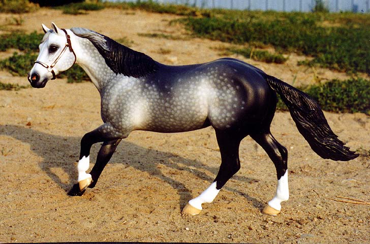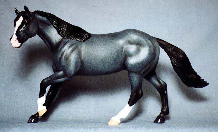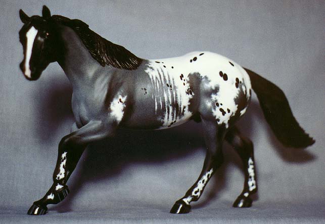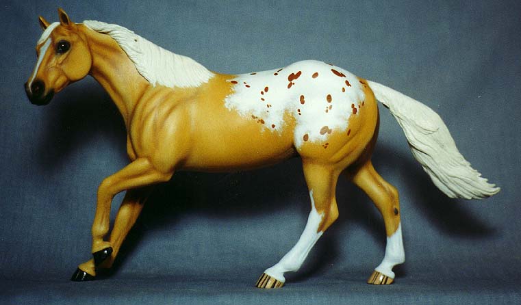The original was live shown numerous times and won many, many championships. This versatile performance model excels in the show ring as either a western or english event horse. Because of the high demand for the piece, he was modified slightly (hair mane and tail replaced with sculpted versions) for production. This was the first sculpture released in resin by Chris Nandell. Completed in the Fall of 1995, it was first released in the Spring of 1996 and the last castings were molded in the Fall of 2000. There were less than 150 pieces in the entire run, and they were sold either painted by the artist or unpainted. This versatile performance model excels in the show ring as either a western or english event horse.