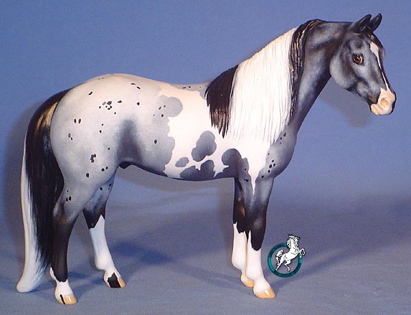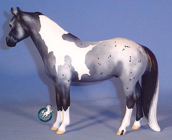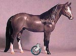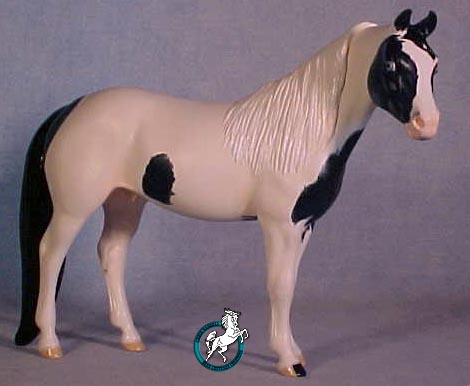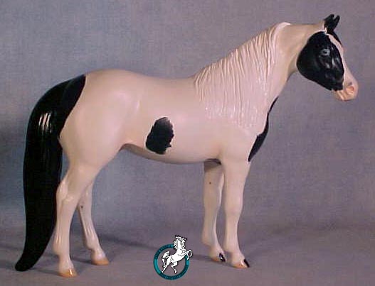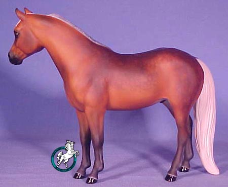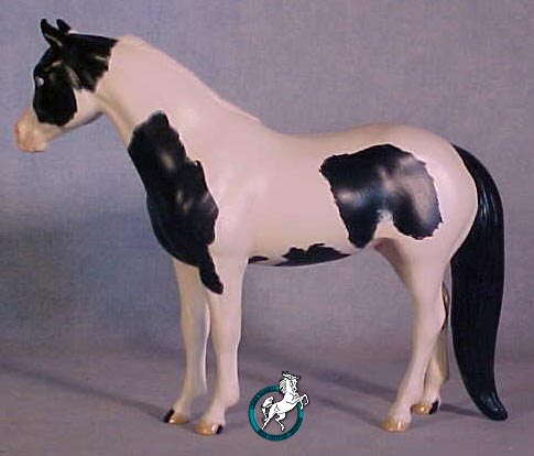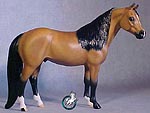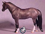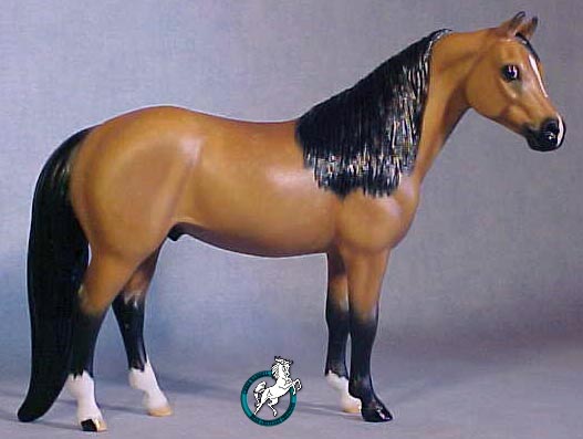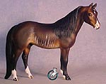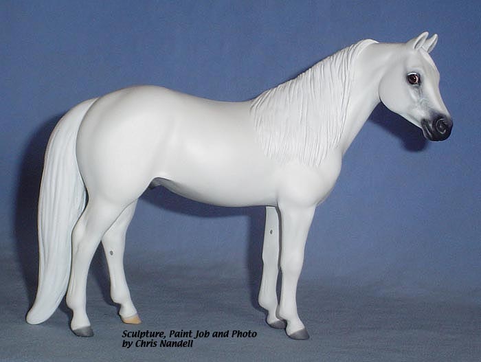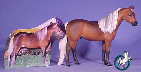 "FANCY ENUF" is aproximately1/9th scale. (The piece measures: @ 5-3/8" tall, @ 7" long.) Not only is he an outstanding example of a Foundation Classic American Shetland, this piece is also perfectly suited for a Miniature Horse. (The silhouettes are exactly the same!) Therefore, any color or pattern will be appropriate on him!
