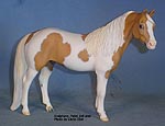 This sculpture is a portrait of our (real-life) Foundation Classic American Shetland Pony Stallion: "SSF's Painted Fancy Enought". "Fancy" is a multi GRAND CHAMPION Stallion in the American Shetland Pony Club and the herd sire of our American Shetland breeding program. (Photos of the real "Fancy" can be seen by clicking on the link: "Beau Cheveaux Farm" on our home page.)
