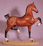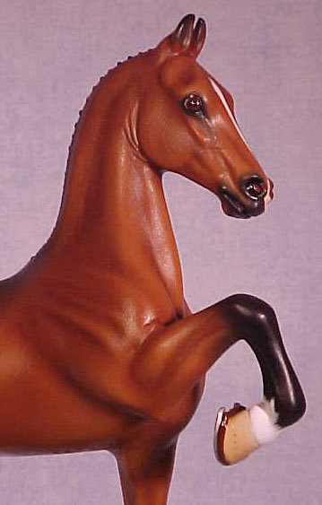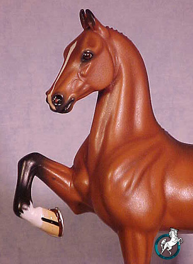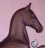 SOPHIA is aproximately 1/9th ("Traditional") scale, and measures: 8" tall and 7-3/4" long. (Base is not detachable and measures 7-1/2" long by 3-1/4" wide.) This edition will be limited to one mold run only. The edition will be painted by Chris Nandell by custom order or on the "Items for Sale" page, as they are completed. Prices will start at $475.00 (In accordance with breed standards, only shades of Bay, Brown, Black and Chestnut will be available.)