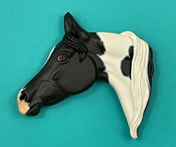 Black Pinto Arabian One of my most popular Project Ponies painted in an attractive black tobiano pinto.. Measures about 3 x 3 inches. Magnets on the back for display on any metal surface. $75.00 PPD Email Chris