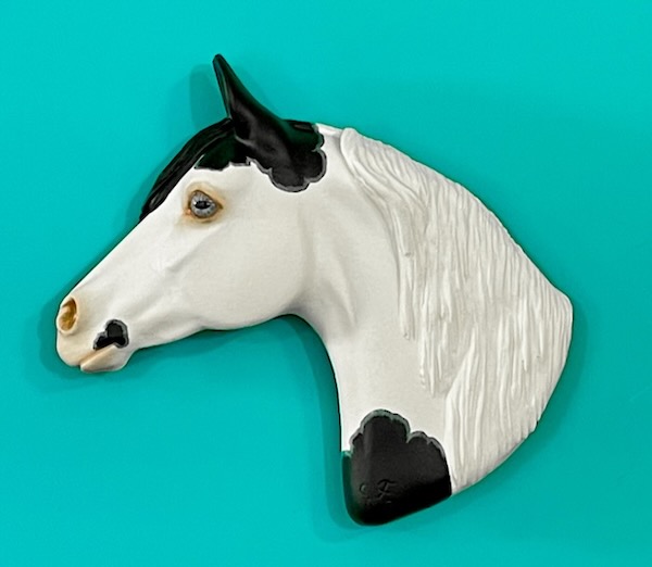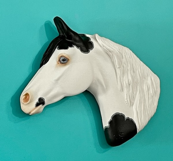 Medicine Hat Western Horse My deluxe sized Project Pony painted in a gorgeous blue-eyed black Medicine Hat pinto.. Measures about 3-1/2 x 4 inches. Magnets on the back for display on any metal surface. $75.00 PPD Email Chris