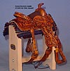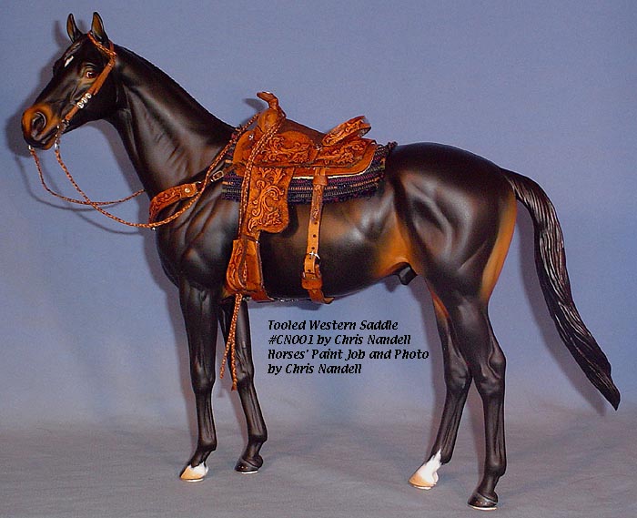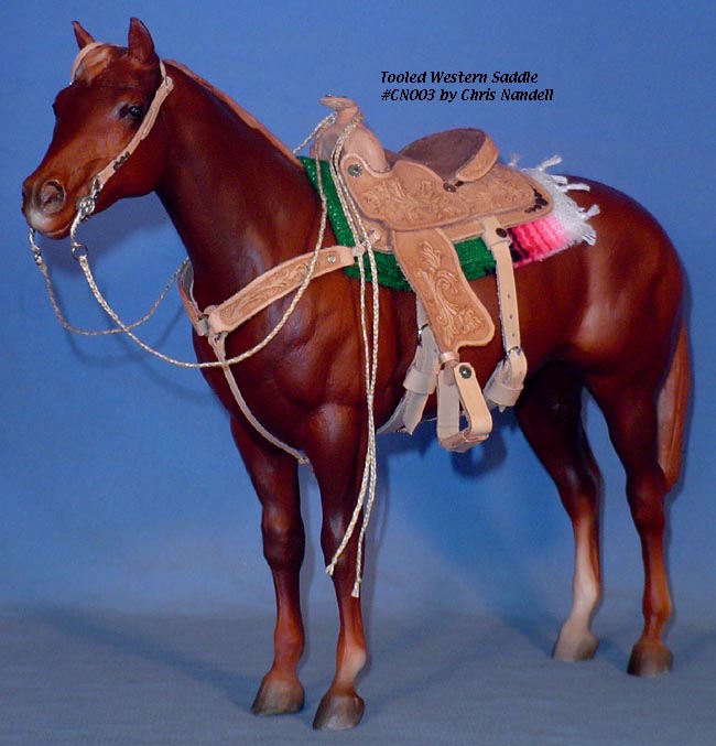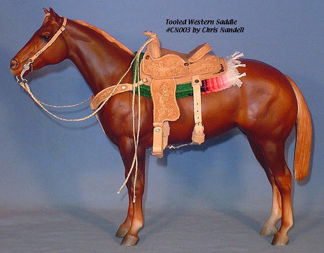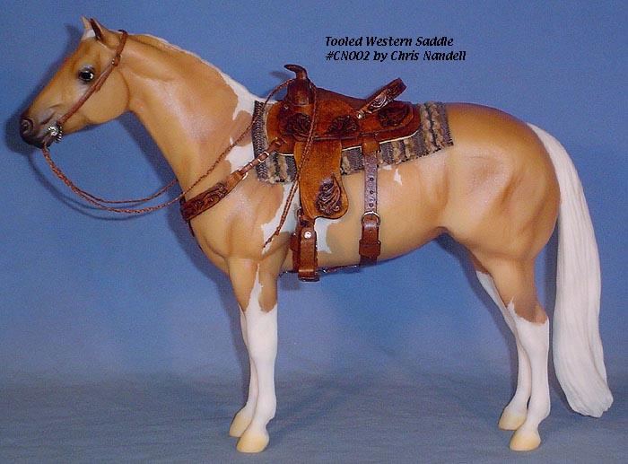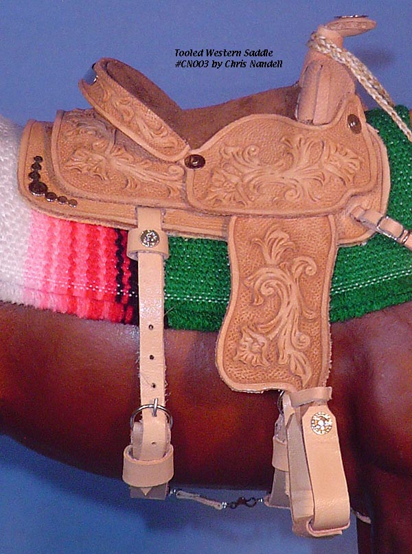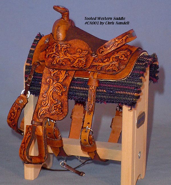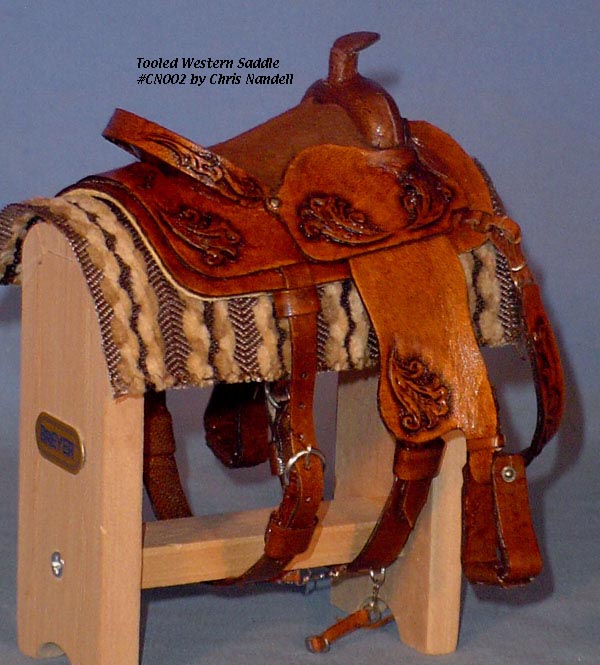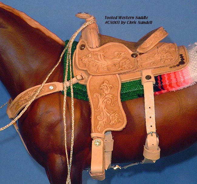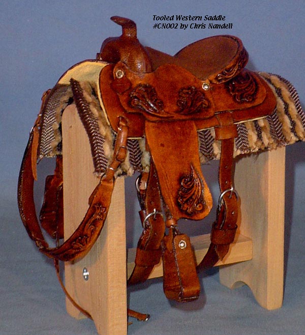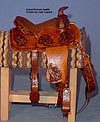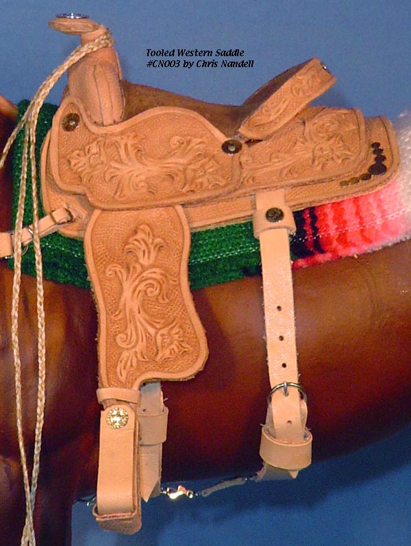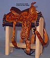 Completed July 20, 2008 I always wanted to have a natural colored saddle set! When leather is carved, the leather gets "burnished" from the various textured tools used that I find very appealing. The carving on this one turned out so beautifully, I wanted to leave it "au natural" to show it off.