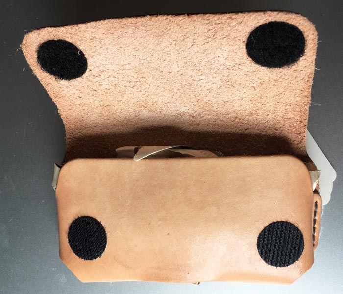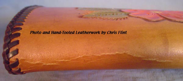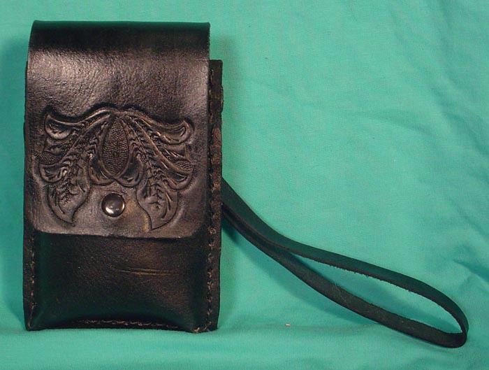 This case has a belt loop so you can keep it handy. Hand-Tooled flap with velcro closure. Measures 5-1/4" x 2-1/2"