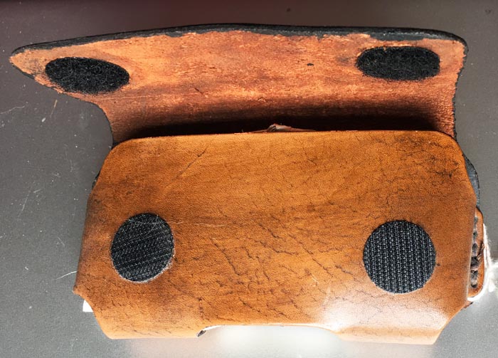 As I mentioned, it was an OLD kit, and because of that, it has a couple of very minor surface cracks along the fold, and some minor tearing of the lining where the holes were punched on the inside. This in no way detracts from the functionality of the piece, it's just a cosmetic issue. Due to that, I have reduced the price of this piece accordingly.