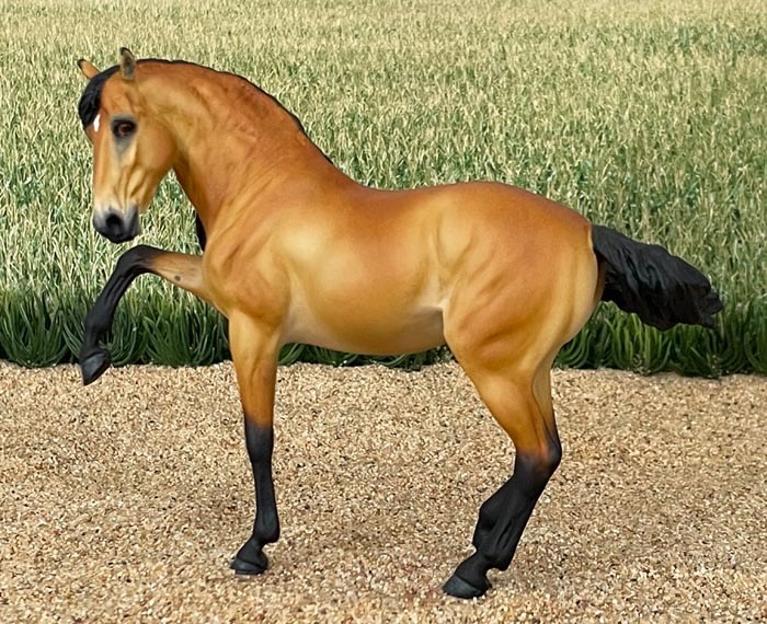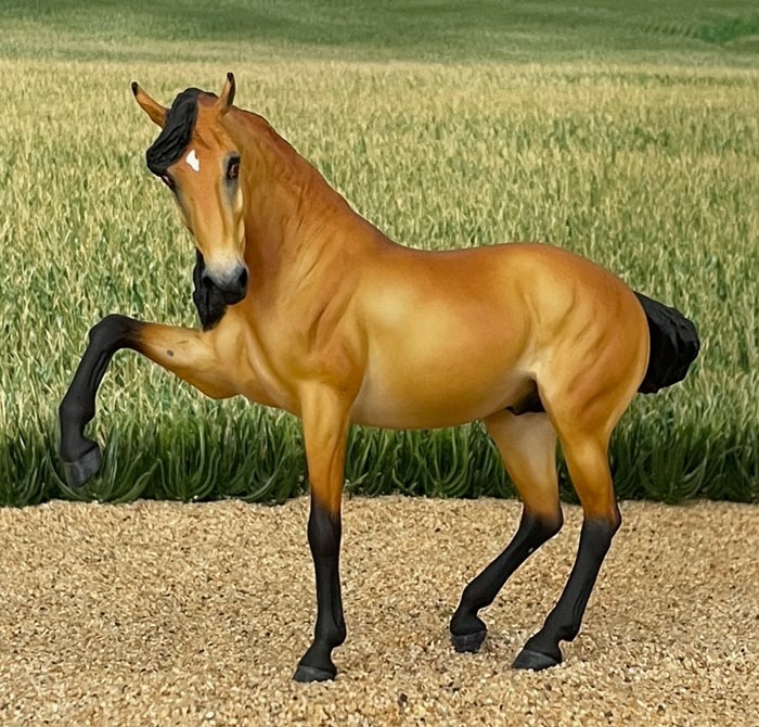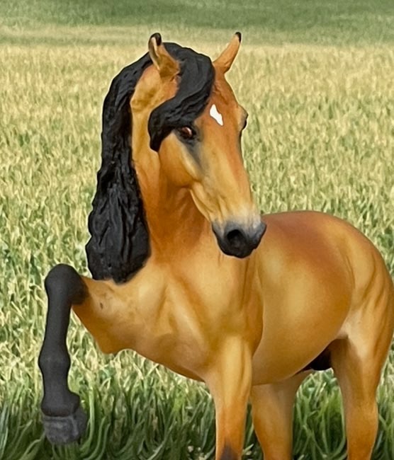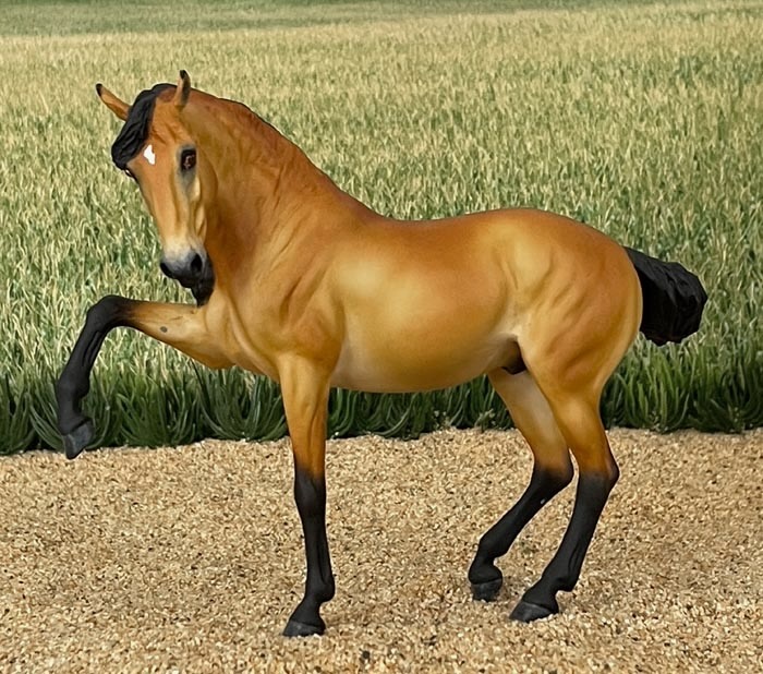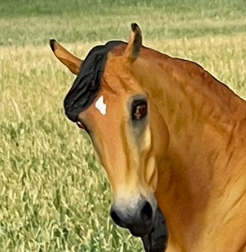 This is one of Breyer's "Breeds of the World" curio scale resins. I spent hours and HOURS prepping him. Then I painted him in layer upon layer to this stunning buckskin - in oils.