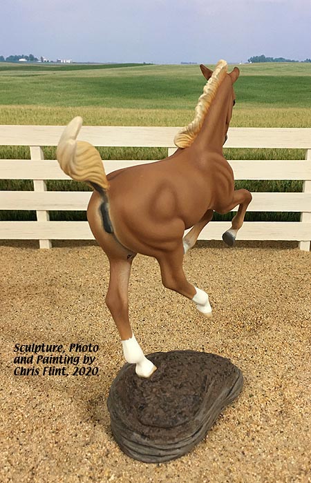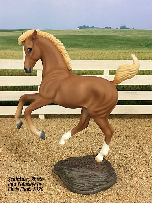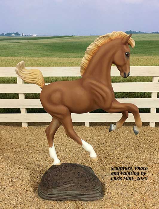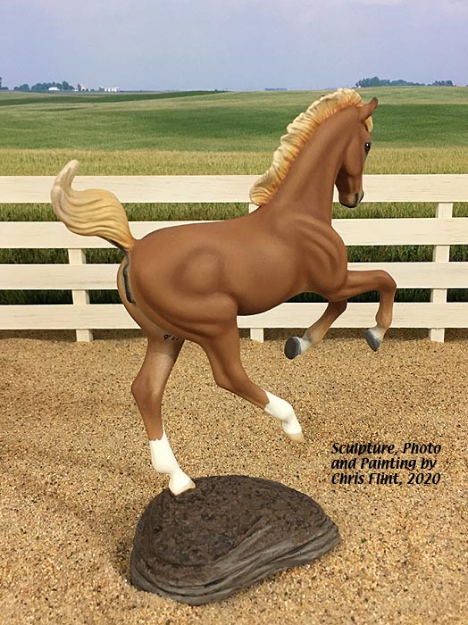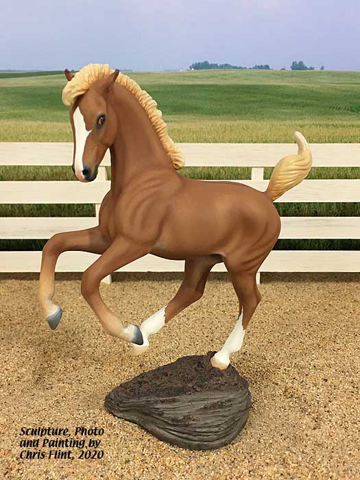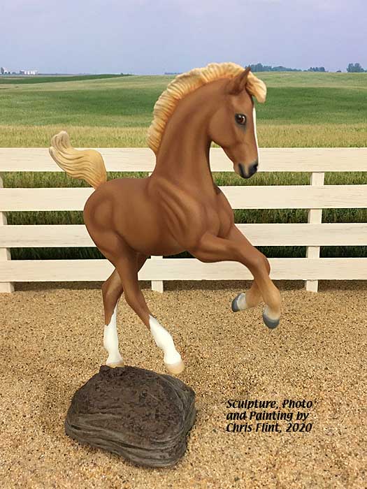This is the Traditional scale artist resin, "Spring Fling" C. 2005, sculpted and painted by Chris (Nandell) Flint. This lovely piece is an older, home-cast, piece that was painted in 2020, from my personal collection. She is painted a lovely flaxen chestnut durable, glowing oils.