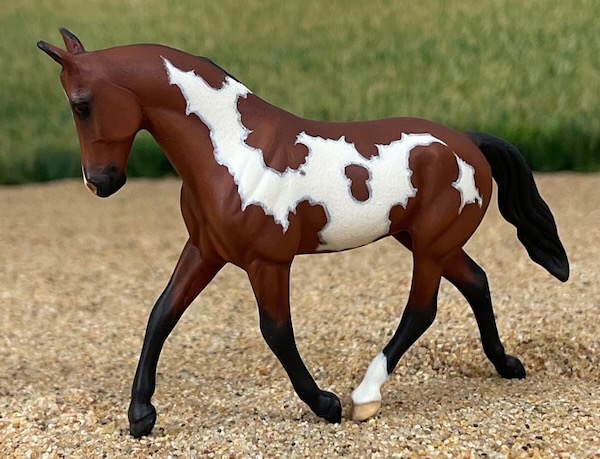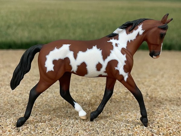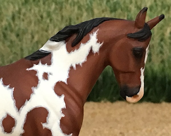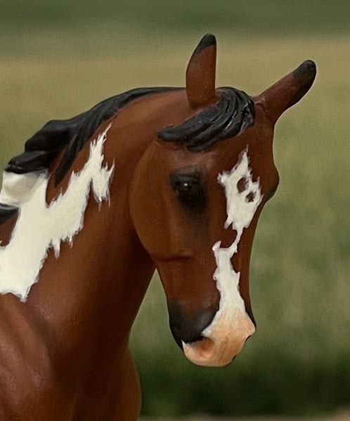 This is an exceptional Custom Mini Breyer "Hands Down". All of the molded on tack has been removed and she was meticulously prepped to perfection. Then, I painted her a beautiful bay Frame Overo in OILS with intricate markings that are fully mapped! I put a LOT of work into this little piece!