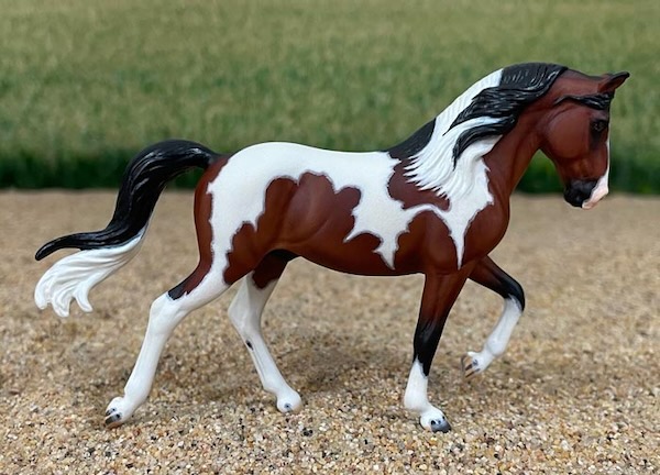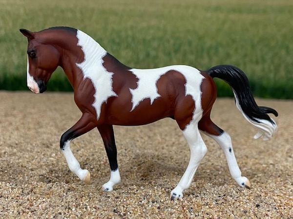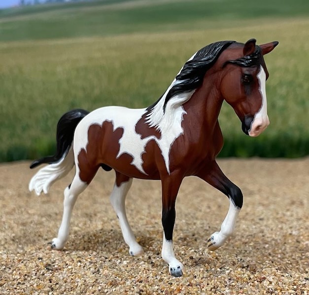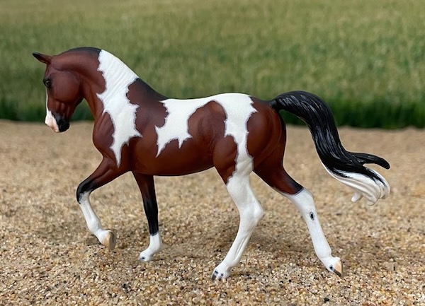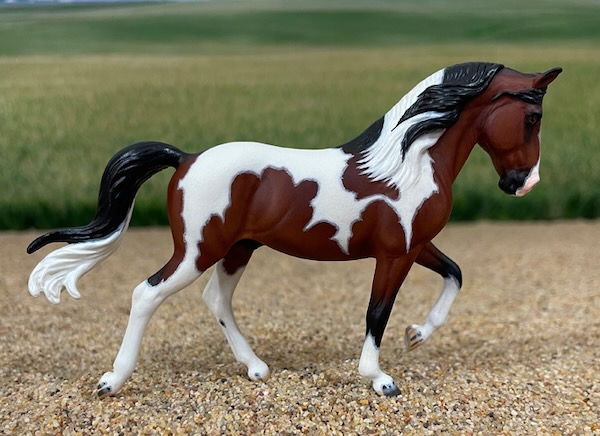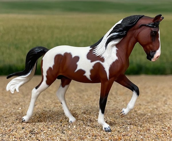 This GORGEOUS AR Mini Tennessee Walking Horse was sculpted by Deborah McDermott. He was painstakingly prepped and painted a beautiful bay in OILS. Then I added Tobiano Pinto Markings - fully mapped - that REALLY make this piece spectacular!