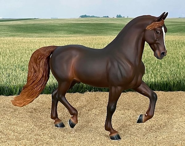 I was inspired by the 1/2 Morgan and 1/2 Percherons that I have seen. This versatile resin has also been shown successfully as a purebred Morgan (old type), a National Show Horse, or a Country Pleasure American Saddlebred.