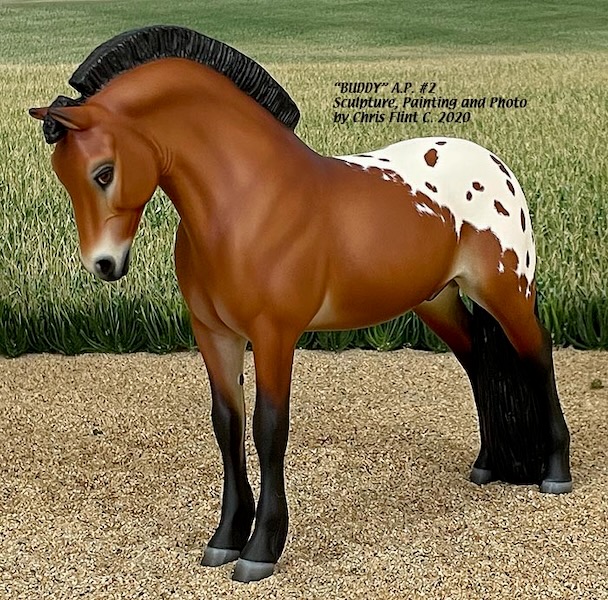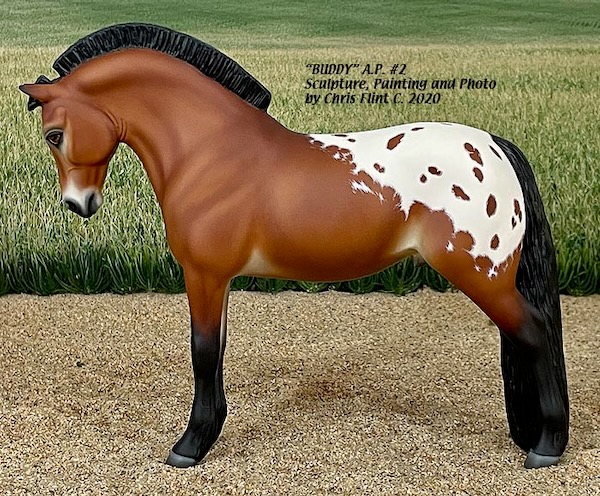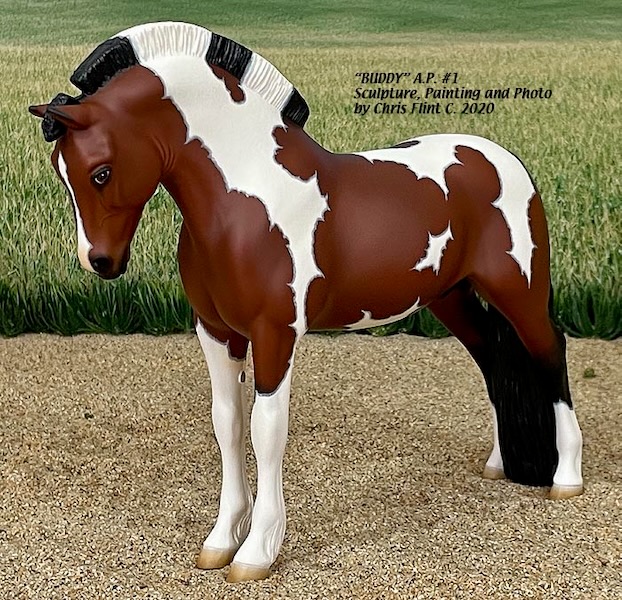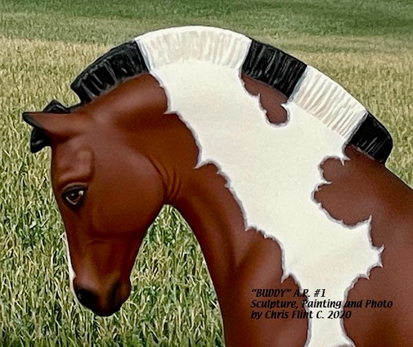 BUDDY is a representation of one of these wonderful ponies! To be a good Photographers Pony, it took a patient, sweet tempered pony that could tolerate adoring, climbing and sometimes screaming kids around and on top of them and stand perfectly still. A spotted or Palomino pony was a favorite choice, but all colors of pony were used. Usually of mixed breeding, but of Shetland type, they often had an upright mane and long tail.