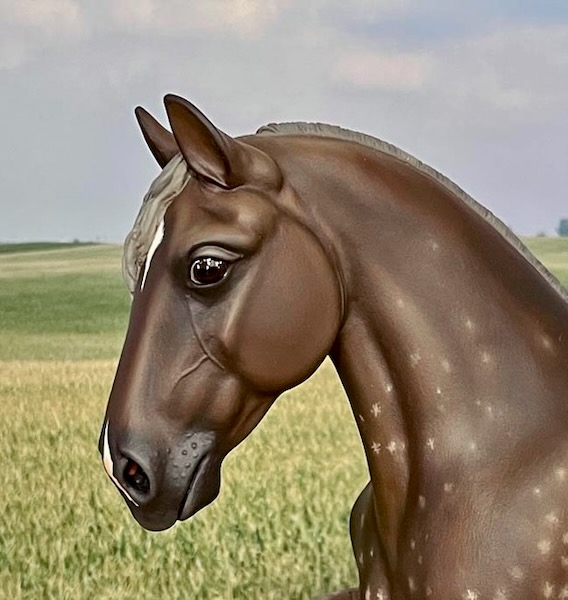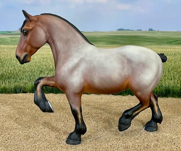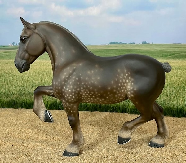 This piece was named after my Mother - a Belgian immigrant. I sculpted this piece using a live model at a Belgian breeders' farm in Michigan. She was this amazing Dappled Silver Chestnut! C. Marie captures the understated beauty and elegance of a typical farm or pleasure type Belgian mare.