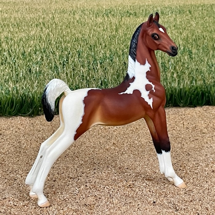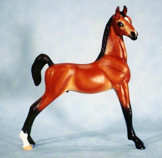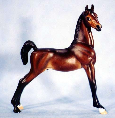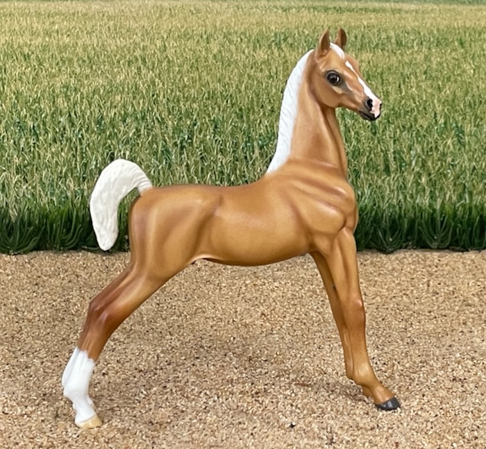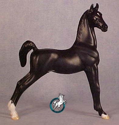Well suited to represent an American Shetland, Saddlebred, Morgan, or National Show Horse (to name a few possibilities.) This second version of the very popular FIRST CLASS was created to fill the demand for a more versatile show-horse or pony weanling that would be shown with a loose (instead of braided) mane.