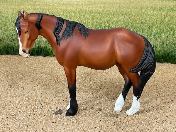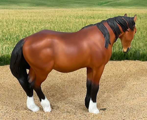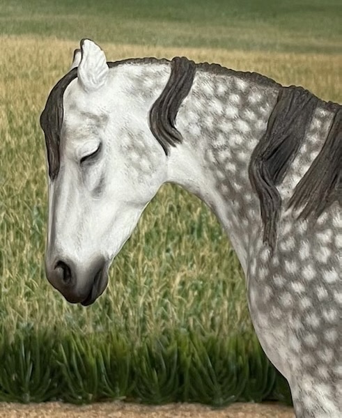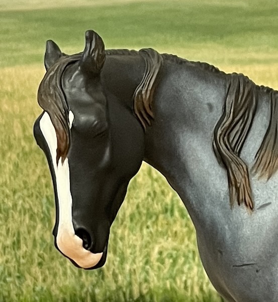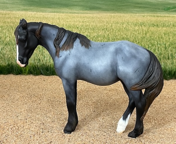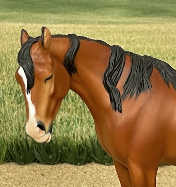 and has the "natural" look of a broodmare out in pasture, including shaggy hair under her jaws,