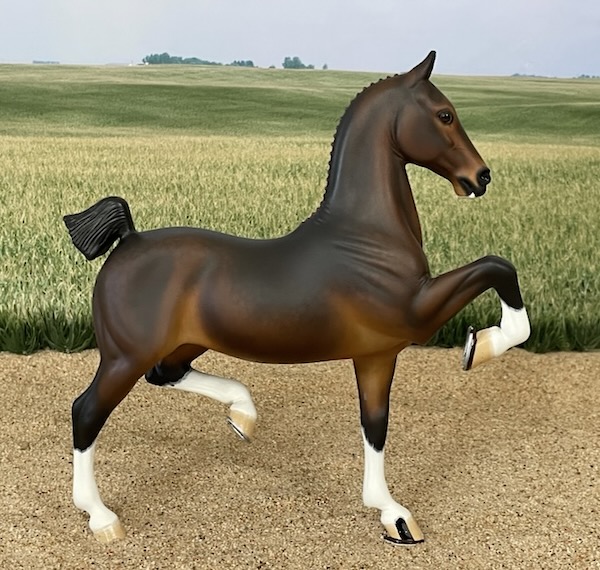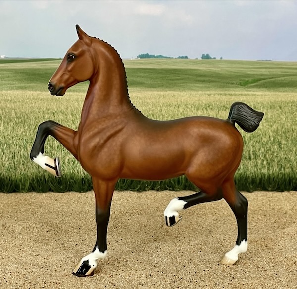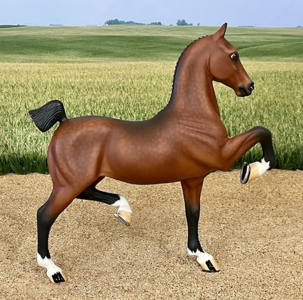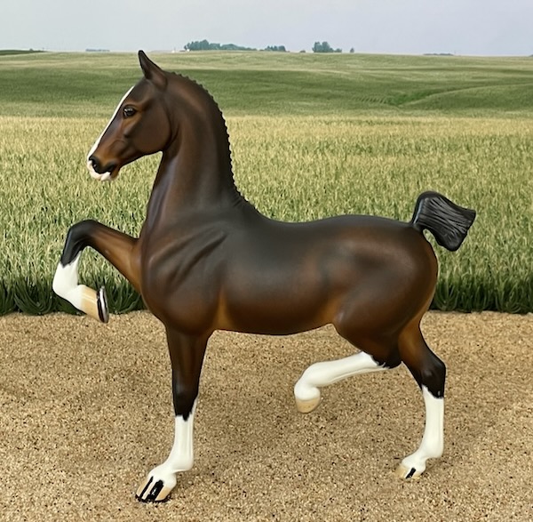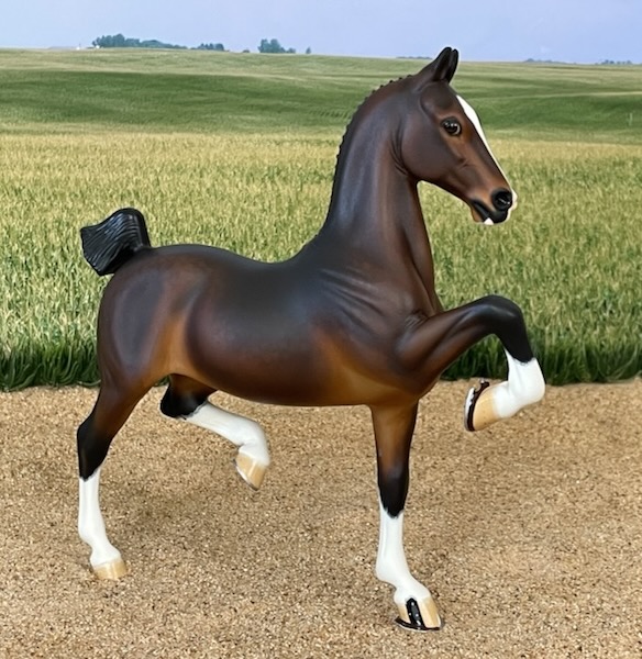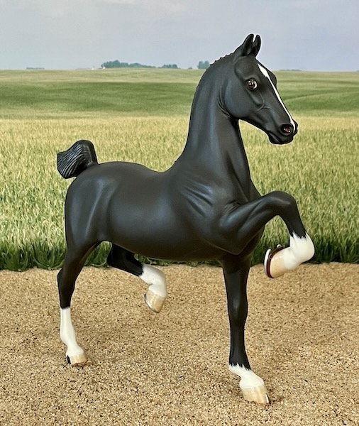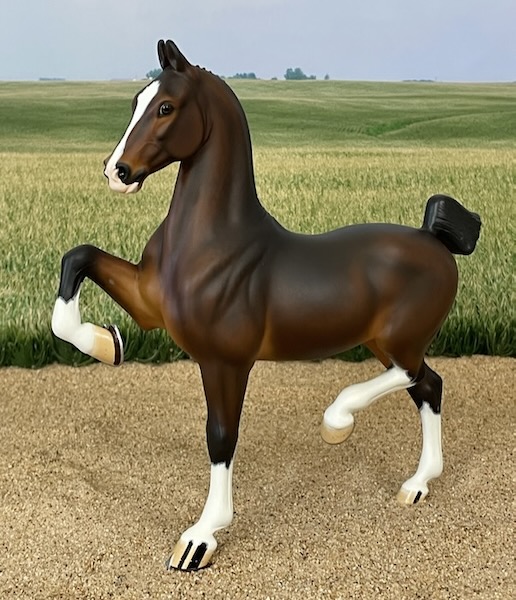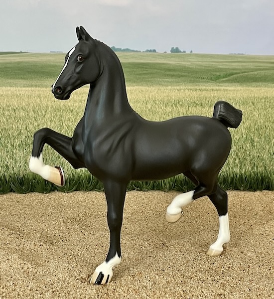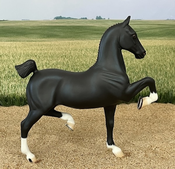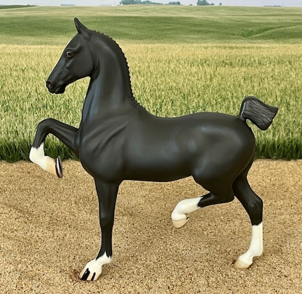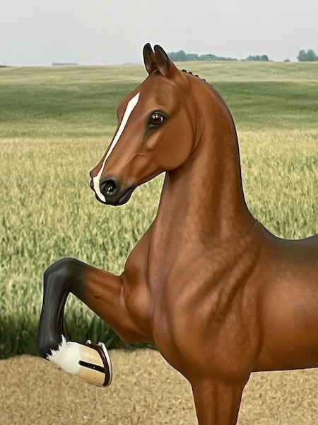 A true "lady of the show ring", SOPHIA is the very picture of elegance and refinement! She is turned out as she would be shown "in-harness" with 24 tiny braids in her mane, a silky "cob tail", shoes (complete with trailers on the hind feet), pads and toe clips. Her beautiful face, delicate curved ears, and long, elegant neck, flow beautifully into her streamlined body. Her motion has been captured at the highest point of her perfectly "square" trot. She is the very image of an "ideal" Hackney Pony that any Lady or Gentleman would be proud to drive into the show ring!